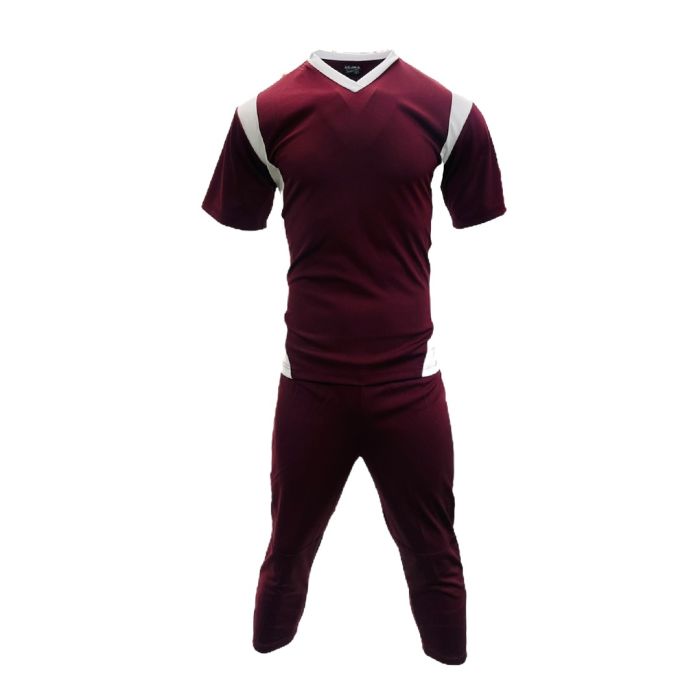 Made from lightweight, breathable polyester, the kit offers moisture-wicking comfort to keep players cool and dry. The design features a bold solid colour on the front and back, contrasted by differently coloured side panels and neckline. A subtle stripe between the sleeve and side section blends seamlessly with the body colour, giving the kit a sharp, modern finish.