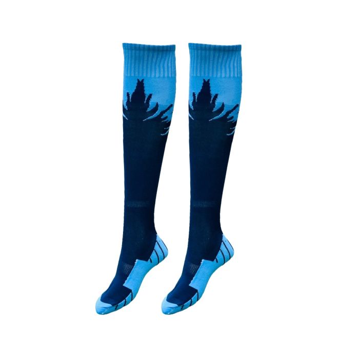 Add bold energy to your kit with the Mitzuma Flame Unisex Sports Socks. Designed in a striking navy and sky flame pattern, these socks deliver performance and personality in one.
