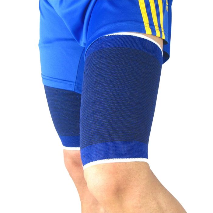 This thigh support applies the necessary, adapted compression to support the thigh muscles, whatever sport you're doing: basketball, football, handball, tennis, badminton, running, trail running, gymnastics, judo, muscle strengthening, body-building, etc.